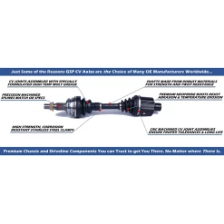 Quality and affordable heavy-duty CV axles from GSP are not as well known when compared to Rhino, High Lifter, Warthog or Titan axles. GSP is a huge automotive driveline components manufacturer. A lot of the top ATV and UTV brand-name axles are produced in their factories. Without the middle man GSP can offer you a quality piece at a great price.Â