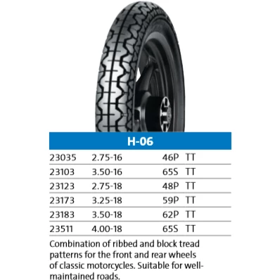 The Mitas H06 tire is for all classic motorcycles from the sixties and seventies. The tread design has been adapted to match the look of common tires from that time period and is a great option for restoration projects.Â
